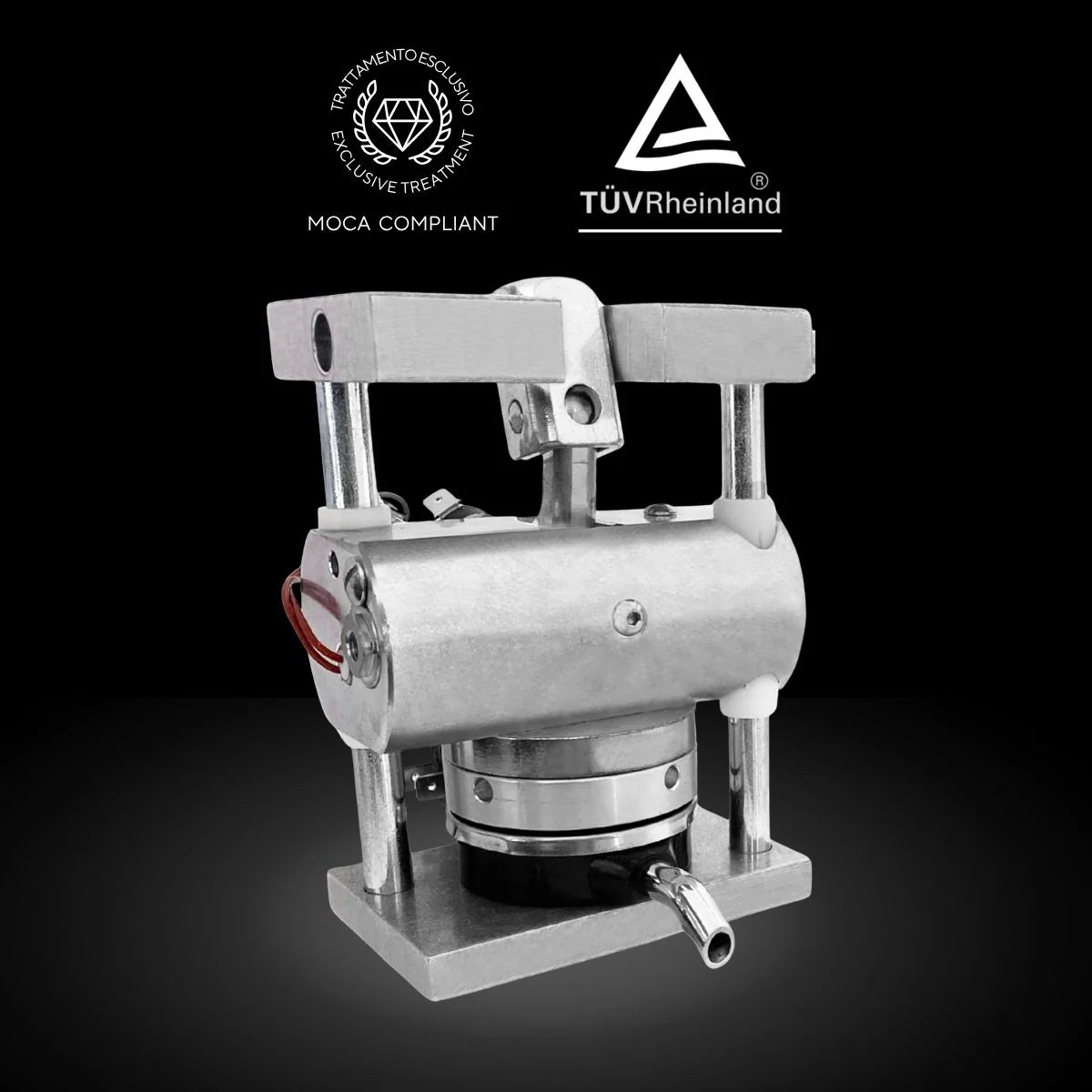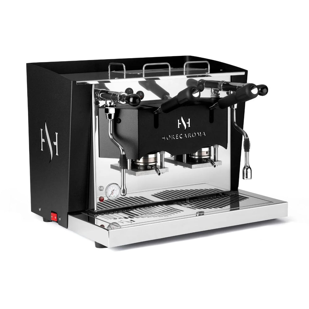 Aroma Professional machines are equipped with brass coffee brewing groups featuring patented Aroma technology. The gray color is due to a surface treatment applied exclusively to our groups. This treatment complies with stringent German food contact regulations and prevents the release of lead and other harmful substances, as brass is present in higher quantities than in the mixed brewing group.
